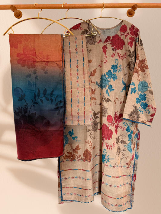Baroque Inspired Vintage Bloom Dhanak Plus Size Pakistani 3-Piece Suit – Kameez, Trousers & Dupatta | Khari XL UK