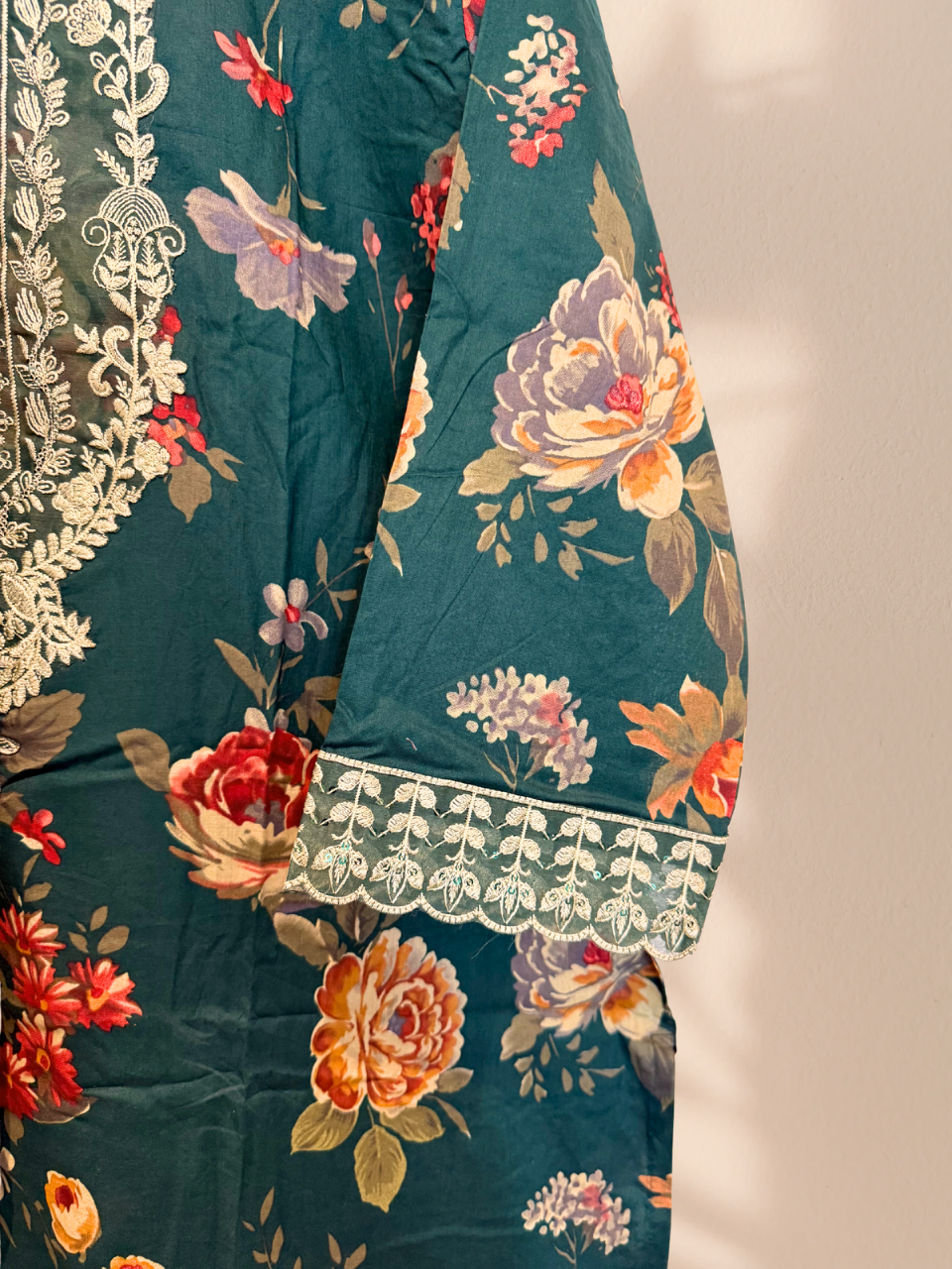 Deep Teal Lawn Suit 3 piece plus size readymade suit